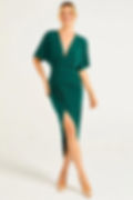 Desk To Dinner Wrap Green Midi Dress With Flutter Sleeves